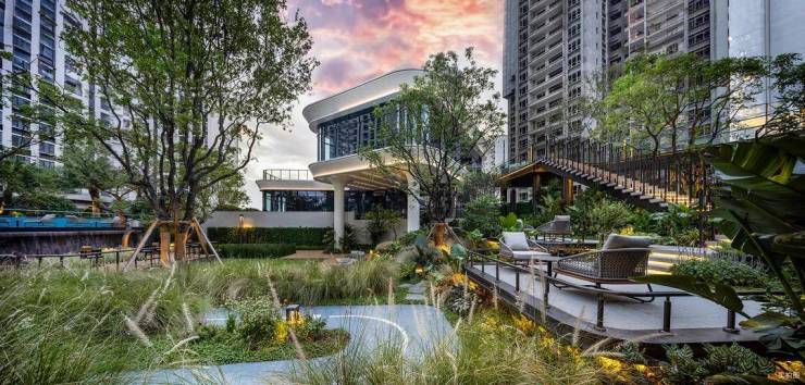 项目汲取新加坡知名豪宅设计专家帕克诺亚的“立体森居”设计精髓,匠心打造广州罕见的五维现代轻奢园林,涵盖板块标杆级20000㎡空中花园、板块罕见下沉式生态中庭、板块稀缺的天际圈层会所,以及四重酒店式归家体验。项目的空中园林惊人地大,约2万平的体量接近于一个普通楼盘的面积,大片草坪、灌木、乔木高低错落,在这座“自然森林”驻足片刻,连空气都是慢悠悠的。