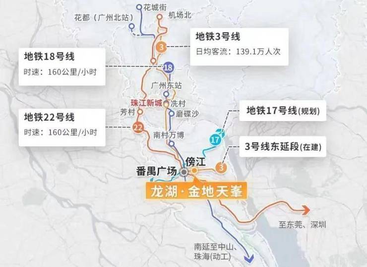 与3号线东延段傍江站就在家门口,现在已经开通了,而且小区最大的好处是,小区电梯可以直达地铁站,无需担心刮风下雨,从小区出发做地铁去番禺广场只需要一个站,乘坐地铁前往珠江新城也不需要换乘。