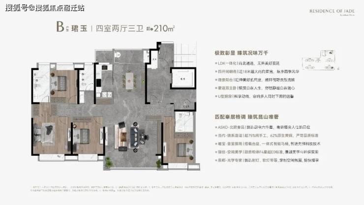 B户型 珺玉丨四室两厅三卫 建筑面积约210m²