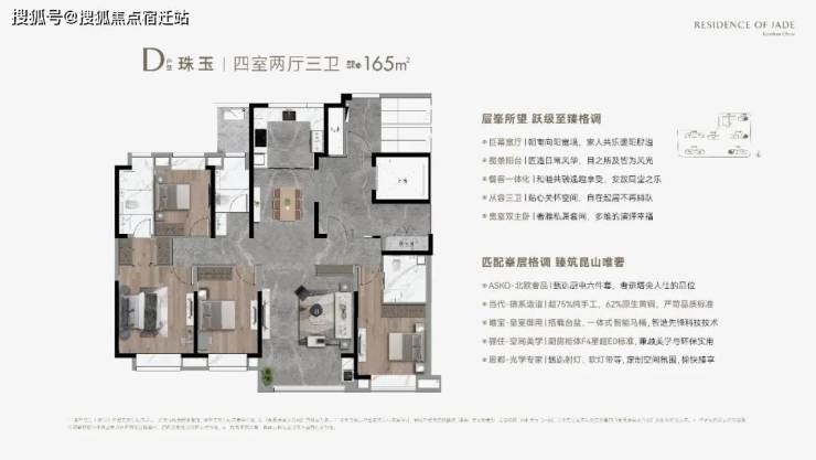 D户型 珠玉丨四室两厅三卫 建筑面积约165m²