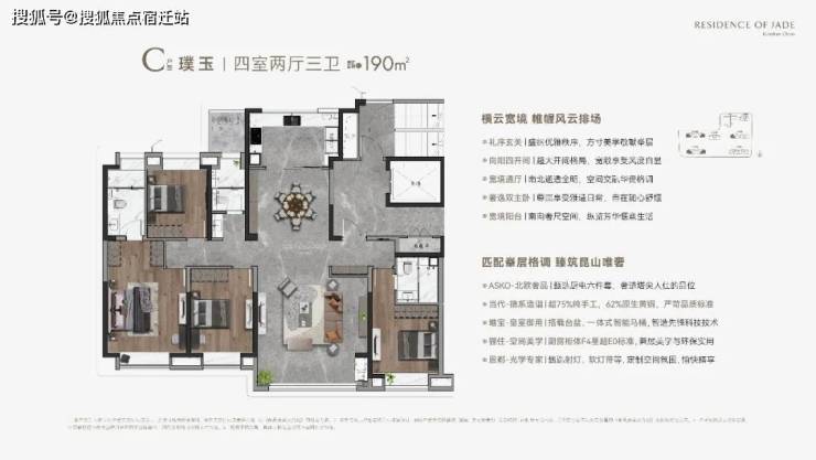 C户型 璞玉丨四室两厅三卫 建筑面积约190m²