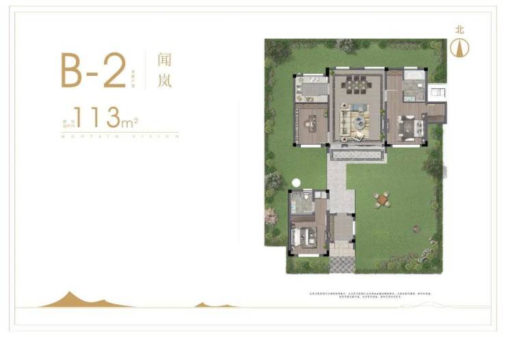 B2 建筑面积约113㎡南向玄关,风雨连廊,庭院风光