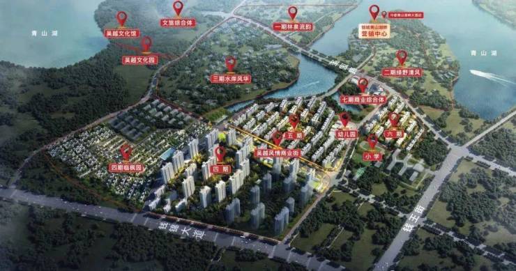 教育:育才小学、浙大附属幼儿园、青山中学、杭师大附小、青山湖科技城第二小学、杭州电子科技大学信息工程学院生态资源:近享约10万km青山湖、约万亩国家森林公园、约42km环湖绿道入口、狮山生态公园!