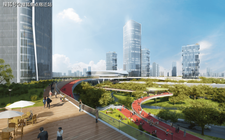 滨水活力轴是通过借景的形式,与水岸内外连通,两岸轴线分布滨水步道,植入了万物友好理念,可以承载散步、遛狗、休闲等户外生活方式。