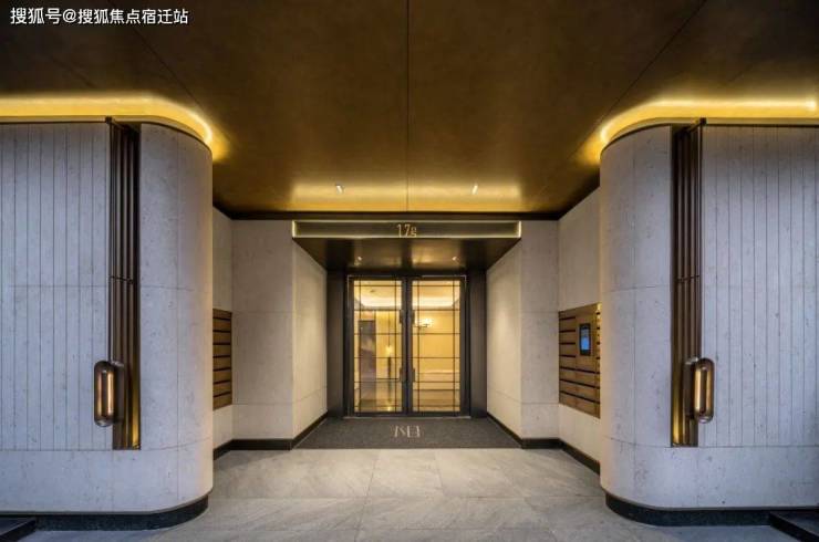 入户大堂内严选太古黑石材及绿野仙踪石材拼嵌,通过水刀石材拼花工艺,营造出从都市精致到松弛度假的情绪过渡。单元入户门头的鎏金门厅设计,手工艺术灯具、海派全自动单元门、人脸识别系统等细节运用,成为新精致青年鲜明的品味标签,引领奢雅新派的都会生活方式。