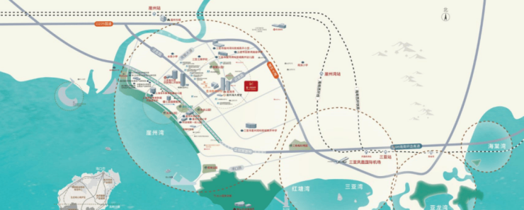 崖州高铁站:直线距离约6km