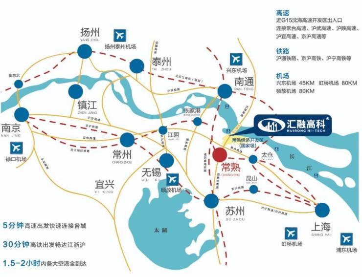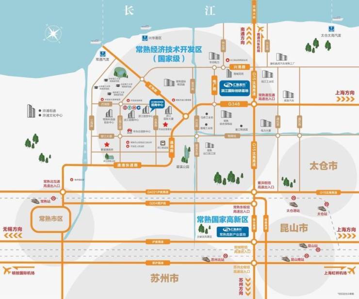 多维交通:距无锡硕放机场仅70公里,兴东机场45公里,距离上海40公里,地处长三角一小时经济区核心区域。周边交通十分便利,距离最近沈海高速,高速口仅2公里。到常熟主城区仅15分钟车程,依托毗邻常熟主城区的区位优势。