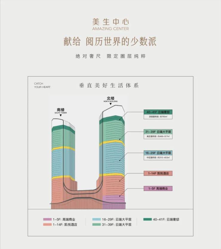 美生中心,汲取全球顶豪的悦己灵感,为国际绍兴而来,于迪荡湖畔,打造地标双子楼,规划户型建面约310-750㎡,涵盖超级大平层、凯悦酒店、高端商业,领衔下一代人居。