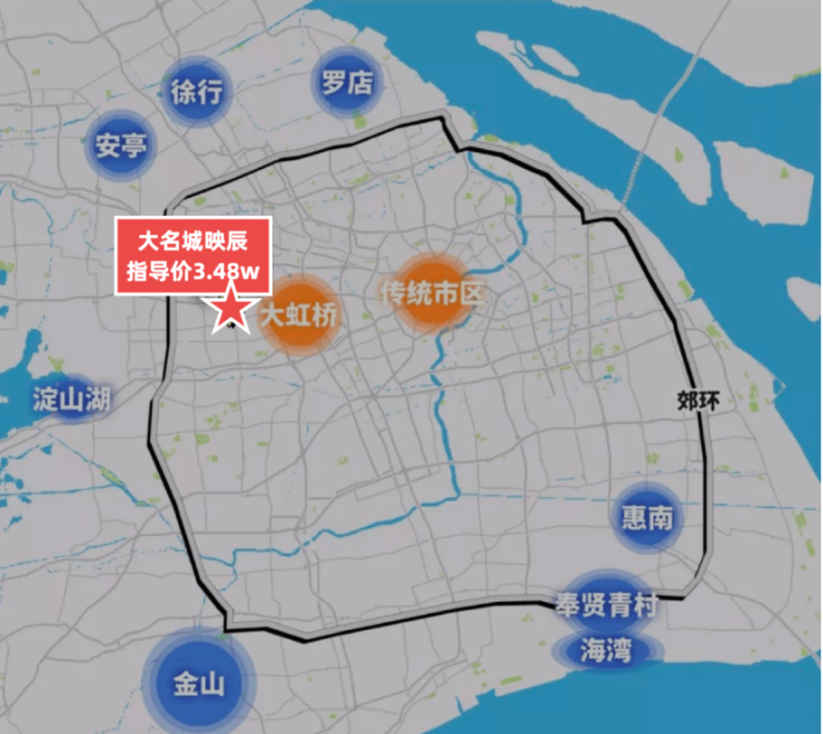 直线距离大虹桥国展中心10km左右的全新准轨交盘,指导价3.48万/㎡,抢到大虹桥价格洼地,且整盘精装交付,