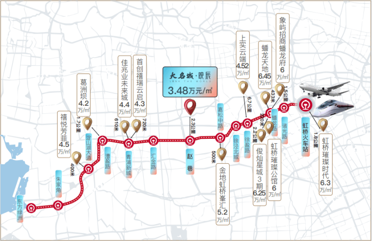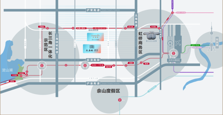 【轨交17号线】项目距赵巷地铁站约4km,6站直达大虹桥交通枢纽: