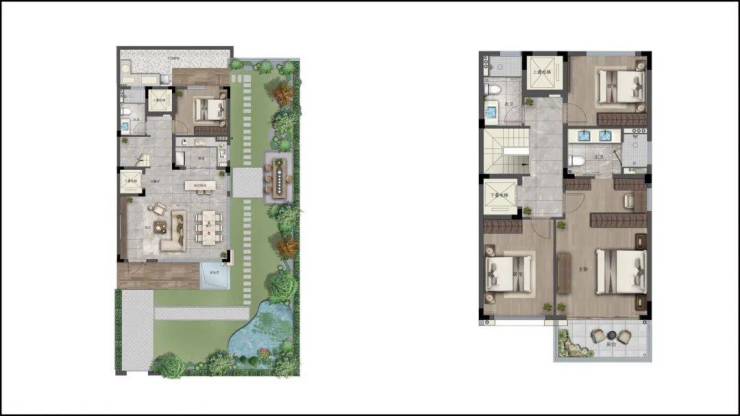 南北独立入户,上下动静分区,于厅堂畅谈,赏阳光与风光,一方书房、茶室,生活自在敞怀,承袭东方礼序,涵养墅居风范。