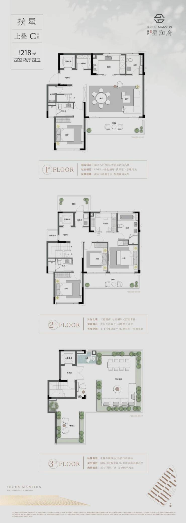 上叠带星空大露台,中叠带入户花园+地下室+超大露台,下叠带花园+地下室,独门独院、私梯入户、类独栋式Villa,少见+创新+迭代+超越是它的DNA,保亿靠星润府,在杭州足以封神了。