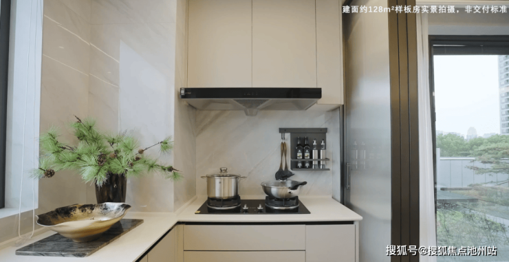保利·东方瑧悦(备案名:汀澜瑧悦府)建面约128㎡户型,革新收纳体系,缔造大容量的玄关空间,置入万能置物台、活动层板,规整家庭琐碎物品外,尽可能兼顾大容纳收纳。U型厨房空间,置入抽屉式调味拉篮、餐具分类抽屉,只为“轻厨体验”。作为太太的精致主场,在卫浴空间内置入多功能美妆镜柜、镜柜开放收纳格,便于各类化妆品、洗漱用品随心放置。