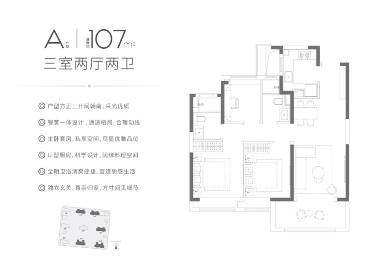 「约107㎡ 3房2厅2卫」