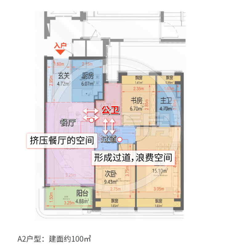 会形成一条连通客卫、次卧、主卧的长过道,空间实用率很低。