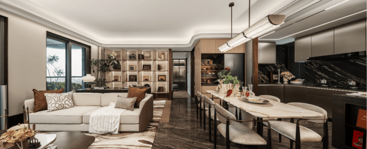 另外,翎翠滨江通过大量的奢石、隐藏式细节将整个室内打造成了艺术的殿堂。