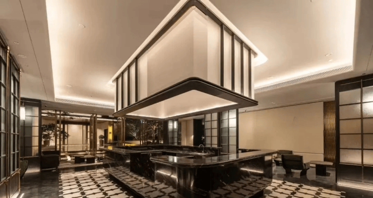 二进 “南洋海派”高奢酒店归家大堂,往常仅用于豪宅室内装饰的奢石,被大手笔地安在了越秀·万博和臻的公区,在细节中拉满了隐奢的生活格调。