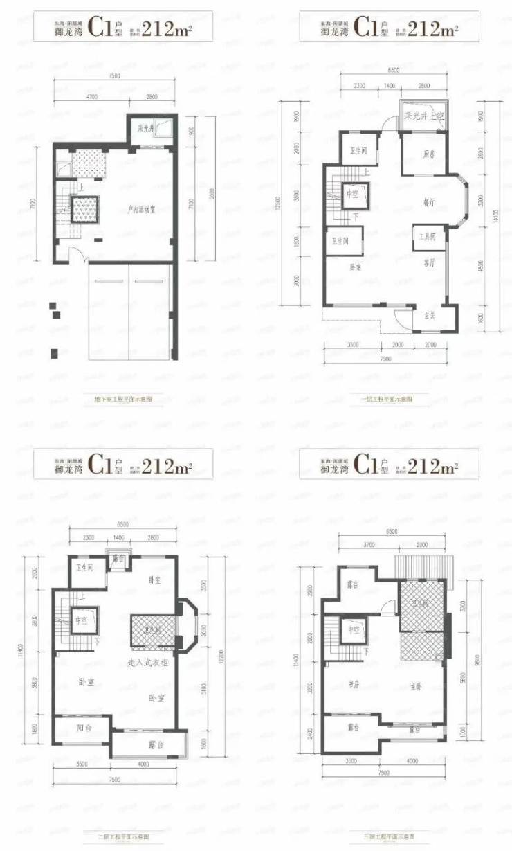【预计房源面积】:约171㎡(13套)、约195㎡(9套)、约212㎡(11套)、约243㎡(3套)