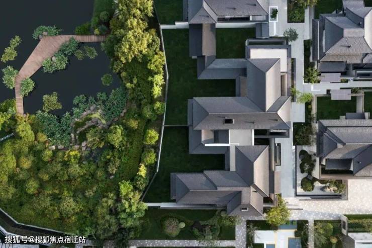 以唐代建筑、苏州园林为蓝本,并取境国际极简趋势,沿着约5000方清风湖,错落有致地布局62座合院,让建筑与湖、自然无界交融,营造出“园中之园”的境界。