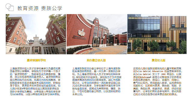▪其他优质教育资源:新东方尚博幼儿园(一级园)、尚博实验小学、上实南校(初中部)等。