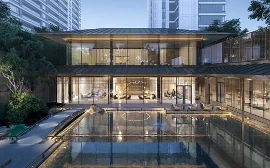景观设计:采用新中式园林风格,打造“两轴、五大院落、五进归家”空间结构,融入禅意美学与全龄关怀理念。