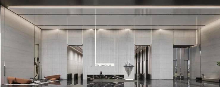 【国际大堂】双层挑高奢办公大堂,层高约11.4米,尽显国际商务气场;大堂由全进口奢石材铺贴,彰显名企尊贵气派