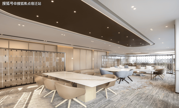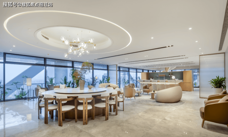 为确保未来团队的高效协作,EIC超甲级写字楼规划每层2800㎡无柱空间,可灵活分割为总部级办公单元。以样板间为例,在标准层高约4.5米、局部挑高约9米空间里,布局生活娱乐区、互动社交区、科技创新区、会议区、工作区等不同场域,单独事务或是协作探讨随时切换,同时也体现了员工为中心的设计理念,让员工在工作中生活,在生活中工作。