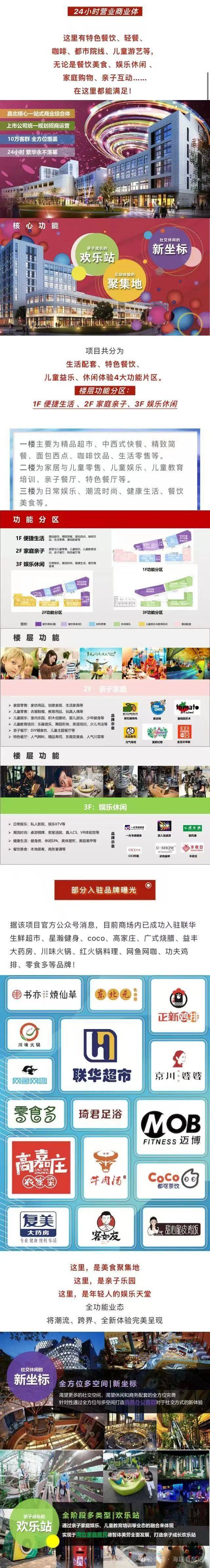 项目共分为生活配套、特色餐饮、儿童益乐、休闲体验4大功能片区。其中1、2、3号楼上面的中高层建筑将会引进3家酒店,商铺一楼主要为精品超市、中西式快餐、精致简餐、面包西点、咖啡饮品、生活零售等,二楼为儿童零售、儿童游乐、儿童教育培训、亲子餐厅、特色餐厅,三楼为KTV、纤体足浴、商务餐饮,负一楼为星瀚健身。整个街区采用天街式建筑风格,同时利用突出空间,将雕塑,场景与人互动、情景化,增加商业的整体生命力。利用广场,商业内街的艺术装置,网红墙的景观连接各个主体空间,并采用绚丽的灯光和标识设计,突出项目整体“越夜越美丽”的主体风格,满足不同人群各层次的消费体验。