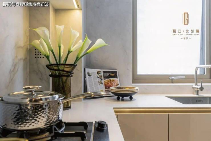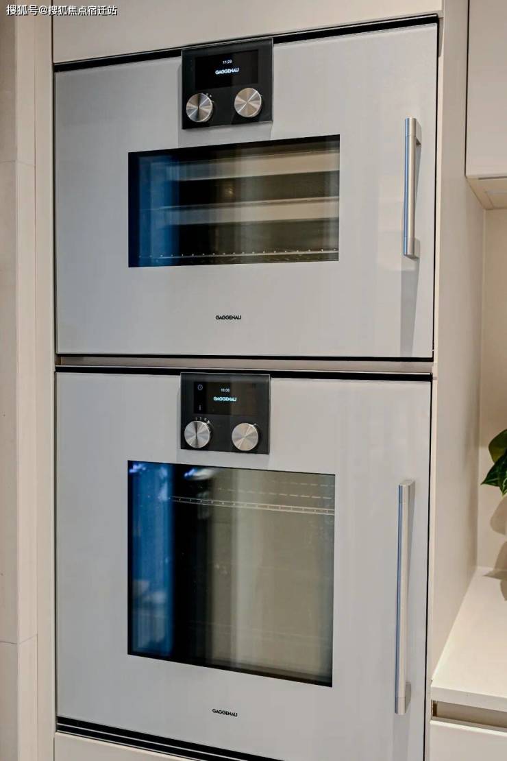 比如厨房方面,西厨定制高柜,容纳烤箱、嘉格纳双开门冰箱、洗手台以及各类收纳空间;中厨自带嘉格纳灶具、油烟机和洗碗机。