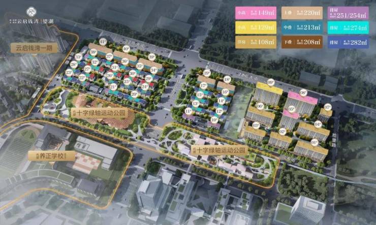 🏠洋房建面约108㎡、小高层建面约129-149㎡、叠墅建面约208-220㎡、排屋建面约247-335㎡