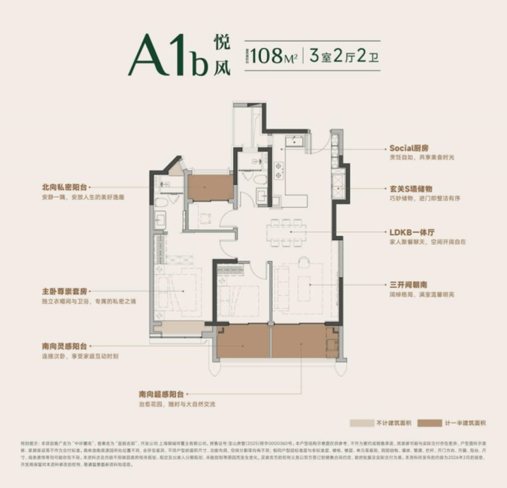 此次热销的明星户型,建面约108㎡明星中户,客厅与南向观景阳台无缝相连,将室内空间向外延伸,让阳光与清风成为生活的常客。约3.05米奢适层高,营造出远超面积的空间感。