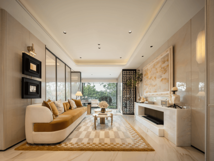 客厅、餐厅、厨房一体化设计,形成超大公共活动区,满足家庭聚会、社交宴客的多重需求,让居住者在约133㎡面积内,享受到远超预期的尺度感与舒适度。