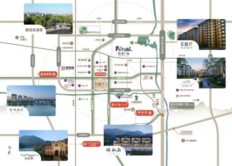 商业:位于绍兴两大商圈银泰和世茂的交汇处,在项目西北面约450米(百度地图测距直线距离约450米)范围内是悦邻生活广场,此外项目东南侧规划商业体,可以满足您今后一站式购物、商务、休闲、餐饮需求,享醇熟生活配套。