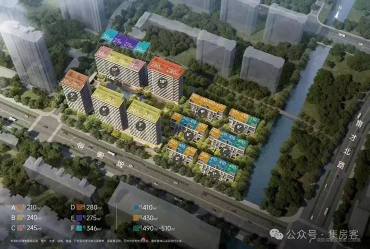 安璞的容积率只有1.8,一共规划了5栋12到16层的高层以及6栋滨水联排,总共180套纯粹的大户型,高层从约210到280方三个主力户型,22套排屋的户型面积更是达到了约410-510方。