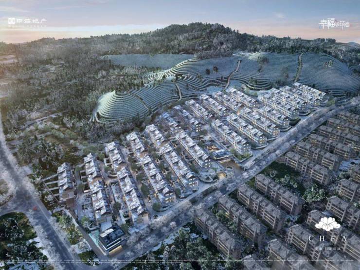 依托这样的特殊地貌,中海十分自然地将全盘分割为十几个自带落差的台地,这批纯叠院就在这样的坡度上铺展开来。小区的西北侧则被茶山紧紧包裹,推开窗,就是满目翠绿的茶园景色。