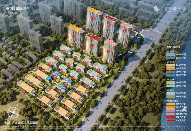 【面积】建面约300-400㎡曲线双拼 建面约245-350㎡宽境联排 建面约139-210㎡瞰江高层