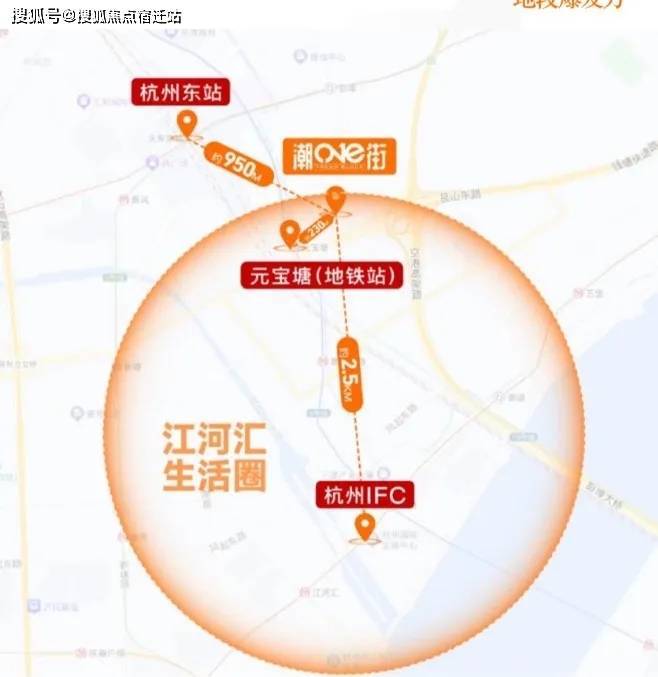 项目拥有四通八达交通网,1.2KM内有杭州东站、沪杭甬高速、空港高架、钱塘快速路、及1.4.6.19号四地铁环绕等全能交通配套,距离元宝塘站仅约270米,快速通达全城,为项目注入源源不断地消费客流,人潮即钱潮。