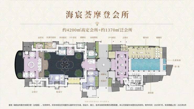 项目规划约4200㎡高定摩登会所与约1370㎡架空层泛会所,远超市面上豪宅会所的尺度,服务品质稳定有保障。