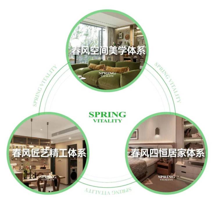 春风四恒居家体系,通过装配新风系统、中央空调、全屋地暖、LOW-E涂层玻璃等,构建居家恒温系统、恒静系统、恒湿系统、恒氧系统,让生活更舒居。