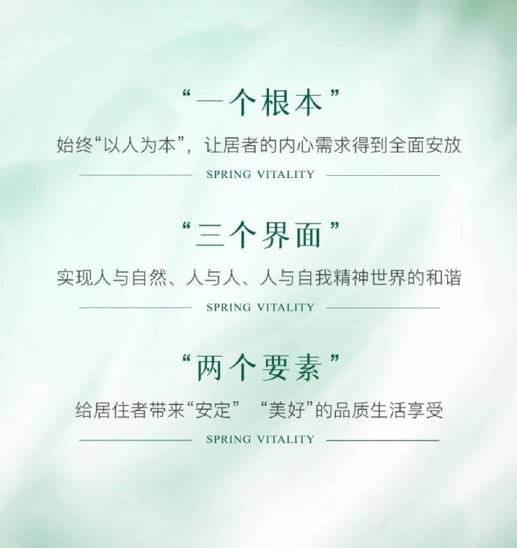 在此次春风晴翠的产品营造过程中,绿城始终践行“一本、三面、两素”的设计理念,塑造绿城式“场所精神”,最终实现安全、健康、福祉的设计宗旨。联袂米修设计,共同探讨春风晴翠的人居理念。