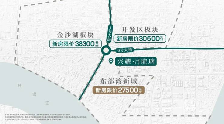项目东北角,还规划了文海钱塘汇学校——要知道放眼全杭州,“文海”也是一张金字招牌。由月琉璃开始往南,则是寄托下沙“下一个30年”的东部湾新城。