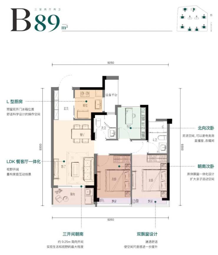 不仅是空间尺寸阔绰,更为重要的是,89㎡户型的总价更加可控,首付32万起,即可入手!