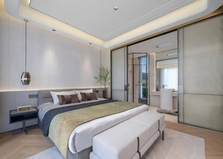 另外,室内还预留了电梯井的空间,方便业主日后改造使用。并且针对传统法式院墅普遍开窗面偏小,小面积院墅户型狭长局促、采光差等居住「痛点」,菲郦雅院大面宽短进深,做到了三开间朝南、卧室全朝南,真正实现「阳光平权」。