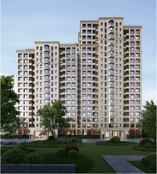 古北99的建筑立面在采用天然黄金麻石材肌理搭配灵动的线条,柔化了石材的坚硬质地,端庄典雅的同时更显时尚。