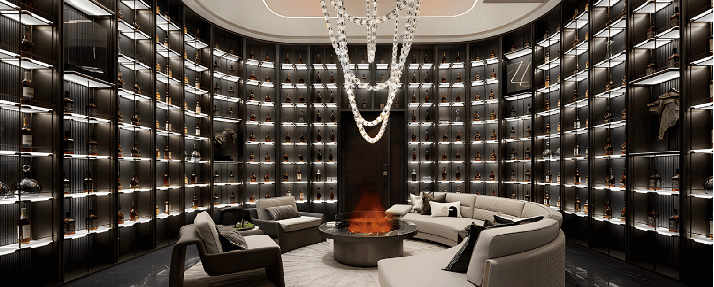 红酒私藏馆、雪茄品鉴馆、多功能影音室、茶艺空间等多功能私享场所