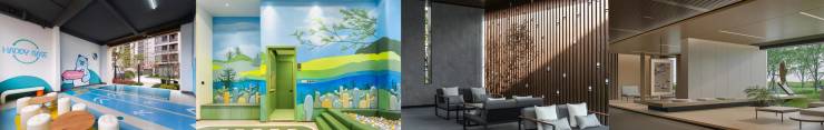 规划全龄段运动空间、亲子乐园等;把公园搬入小区内,植被疏密有致,一步一景。