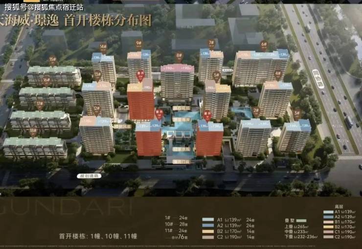 住宅产品线规划科学,高层采用全2T2户设计,建筑层高约3.1米,高层建筑面积约139-193㎡,叠墅产品230㎡-265起步面积实现居住升级,通过空间垂直延展重塑墅居生活美学。