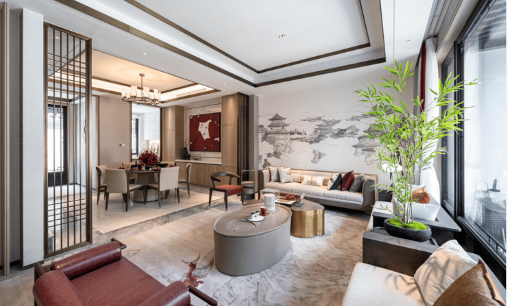 约195-300㎡的超级尺度,住在一起互不打扰,各自演绎生活的多重角色;上下五层、四房朝南、五大阳台、约60方超大餐客厅,每一处空间,也拉开了纵向与横向的尺度,包容一个大家庭的起居宴饮。中式合院的独特户型设计,即使是三代同堂也能有各自充分的空间,