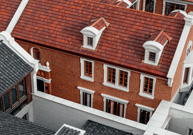 沿袭原筑风貌递延,经典海派传承。弘安里「传颂300」新组团,采用大面青砖、局部红砖腰线与仿木铝合金门窗的立面做法,延续人字形山墙的形制,屋面承袭传统小青瓦工艺,更新老虎窗。