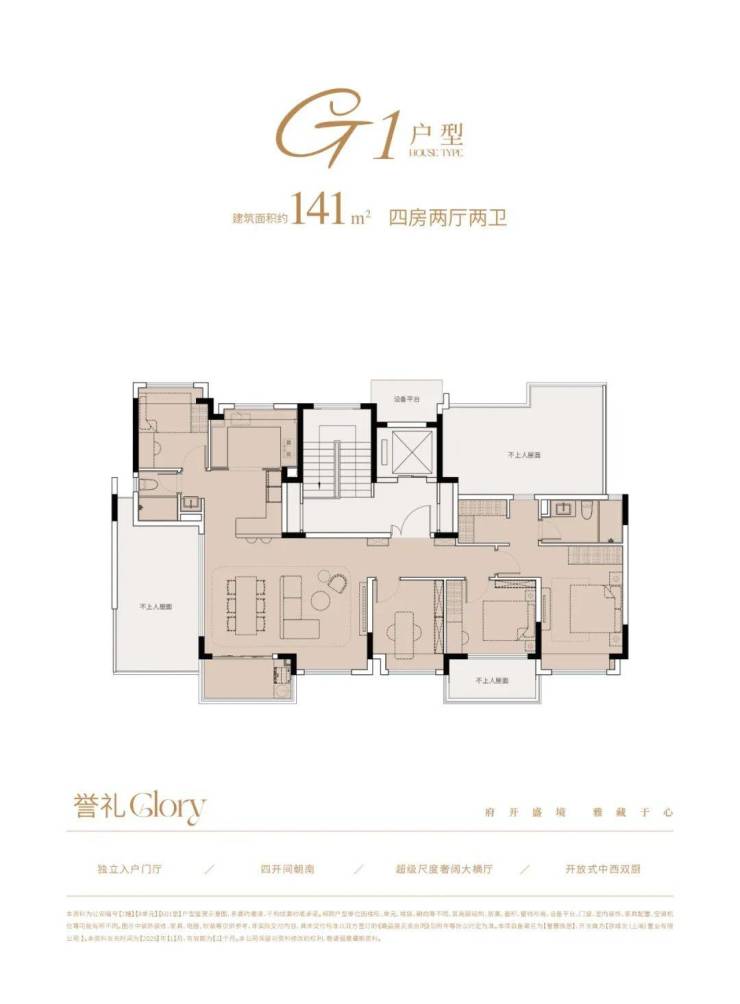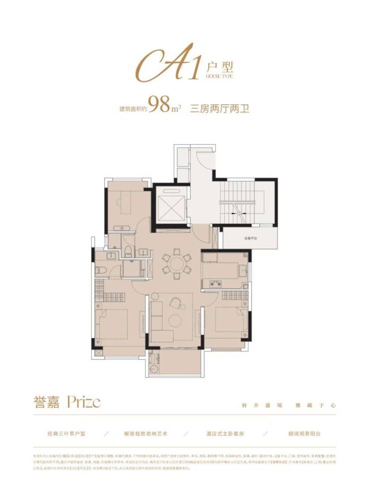 项目总共有76套建面约93-127㎡3房、建面约141㎡4房。